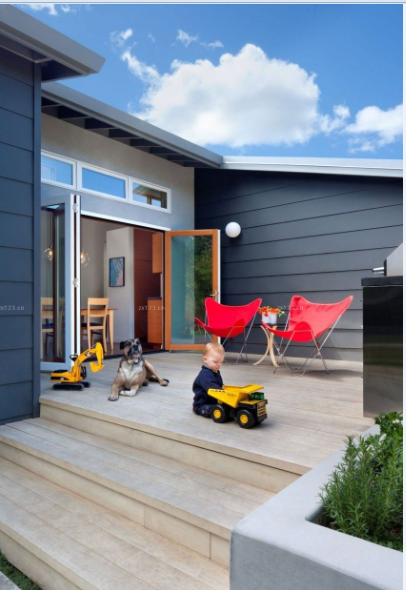 藍天白云加上白色的橡木,給小朋友一份玩樂時的寧靜。